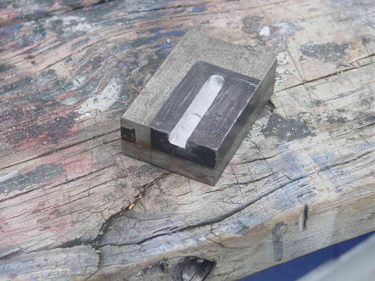The slot being made, the bolts up front are the hold downs. the slot in the metal when I stopped. I have to go deeper to be able to use the hold downs to work a slot at the left side shown in the black mark in pen.