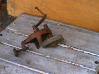 I had made a model- a prototype last year out of wood just to see if my design was even possible. I found that the block cut across, was the exact size as the model. There are a number of changes I am making based on that model's experience. I drew lines showing where material will be removed and what will stay. I had set up my machine lathe as a milling machine, thinking I might remove some wood, but realized I did not have the time or gumption by then. I packed up the back yard and called it a day.