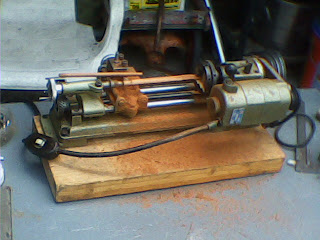 I set up the mini metal lathe to work with more crochet rods. I was having a problem with the automatic feed so I partially disassembled the lathe and made some adjustments. I found that an eigth turn of the adjustment screw made a dramatic change in the way the controls operated. Too tight and it would bind, too loose and there was slop. I got rid of some old sawdust in the tight corners of the machine and lubricated a few items before getting back together. It helps to know where the controls are so one can do quick adjustments while operating. A couple were plainly visible but I was thinking those screws were something else.